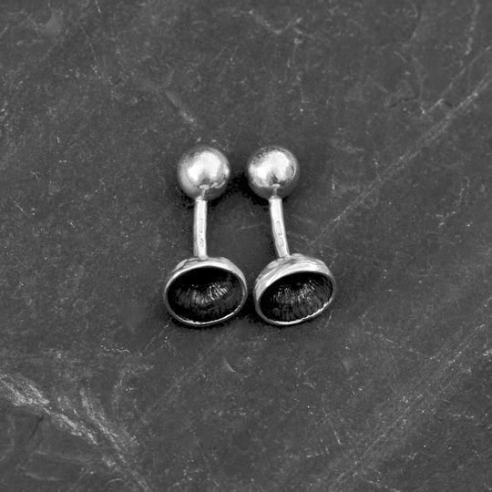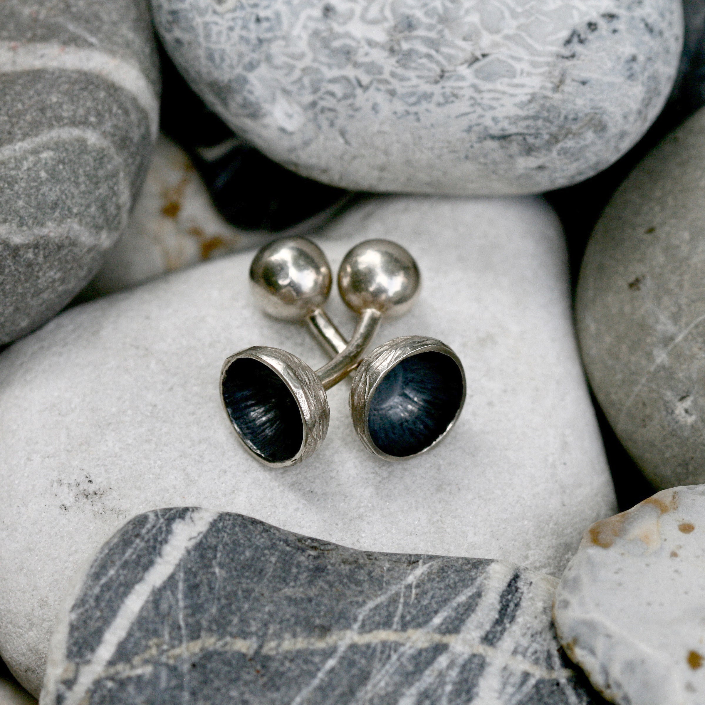 Handmade Sterling silver acorn cup cufflinks on a ball ended post with a 1.4cm acorn cup. The inside of the cups can be oxidised or 22ct gold vermeil plated.
