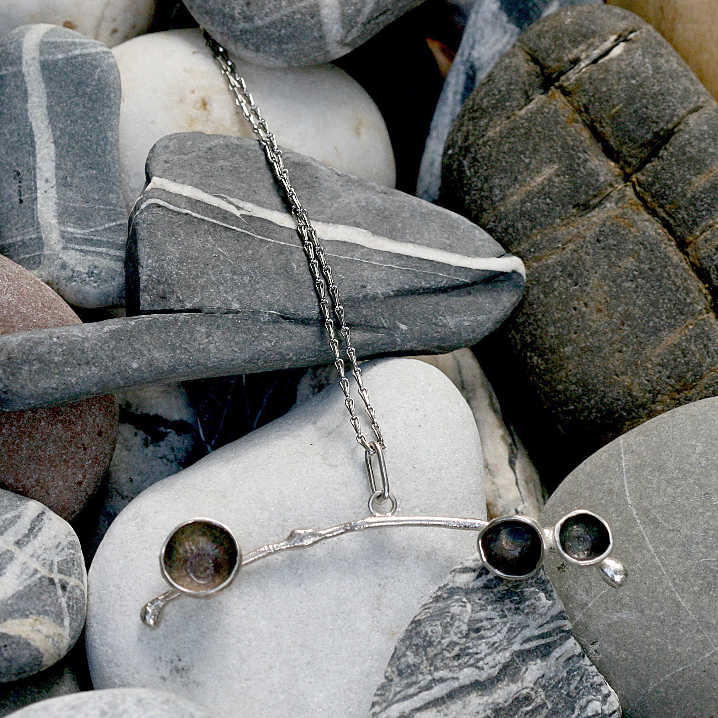 A really lovely new design our acorns are reminiscent of the empty cup we find in Autumn. I made a variety of styles of this bigger and longer necklace before I settled on this design. Every piece will be different from all the others as the techniques I use to shape the twig never produce the same result. If you really like my design please contact me and we can discuss a specific piece for you at no additional charge.